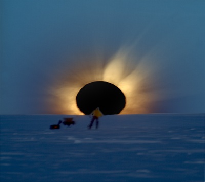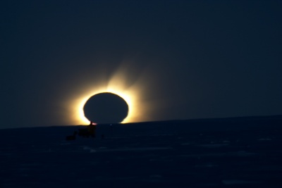 The signature image of my trip to Antarctica is a composite photo showing the Sun during totality, with a fellow eclipse chaser superimposed on the Sun. This image was intended to convey the feeling of the eclipse, the emotions it evoked, rather than be a strict scientifically precise representation. I guess I succeeded in evoking emotions, because I have gotten a phenomenal reaction to it: everything from "it's a Photoshopped fake" to "I love it, how can I buy a print". To the doubters: this is a real image, I was really there and that's what it really looked like. Interestingly, people who have never seen a total solar eclipse think it's fake, while people who HAVE seen a total eclipse (particularly those with me in Antarctica) think I got the image exactly right!