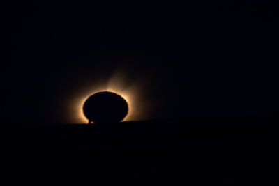 The radial gradient algorithm doesn't know about the ground, so the ground near the Sun is darkened as if there was visible corona there. That's a defect that needs to be corrected by superimposing the ground without a radial gradient filter. I chose to superimpose a different image than the one used for the outer corona, because as you can see in the fourth raw image the person is kneeling and it's not apparent there is a person there.
