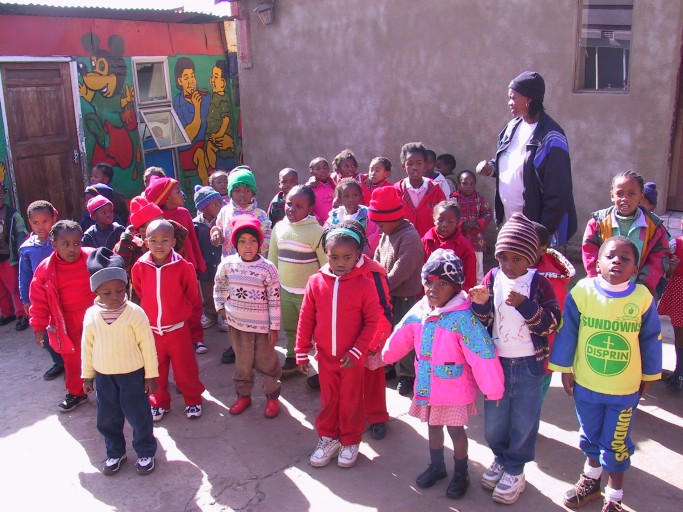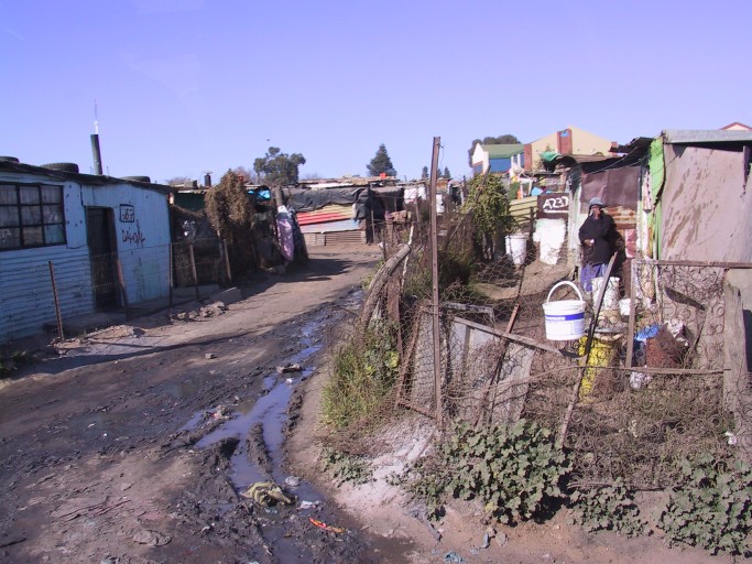 Minutes away is Mandela Village, many acres of the poorest of the poor. They live in shanties built from whatever is available. Many of the building materials were obtained through "midnight shopping". Every shanty has a number painted on it, denoting that family's place in the waiting list for government housing.