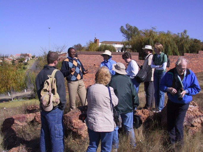 The flight from JFK to Johannesburg, South Africa took an interminable 15 hours. I maybe got one hour of sleep I was so uncomfortable. An aisle or window seat makes a huge difference, those middle seats are terrible. This photo is of our group just after getting off the plane, as we load our bags into a tour bus that will take us to our hotel.