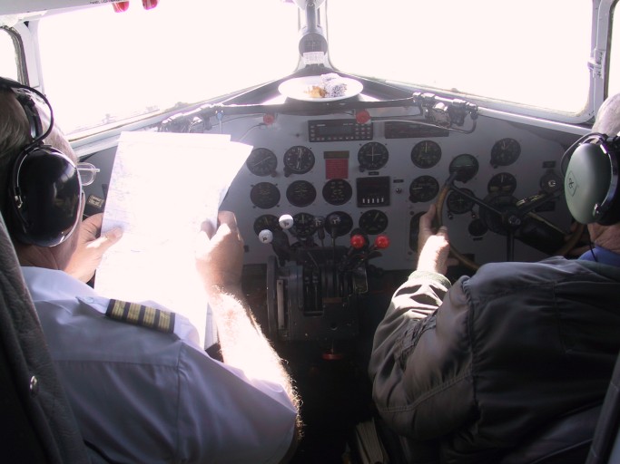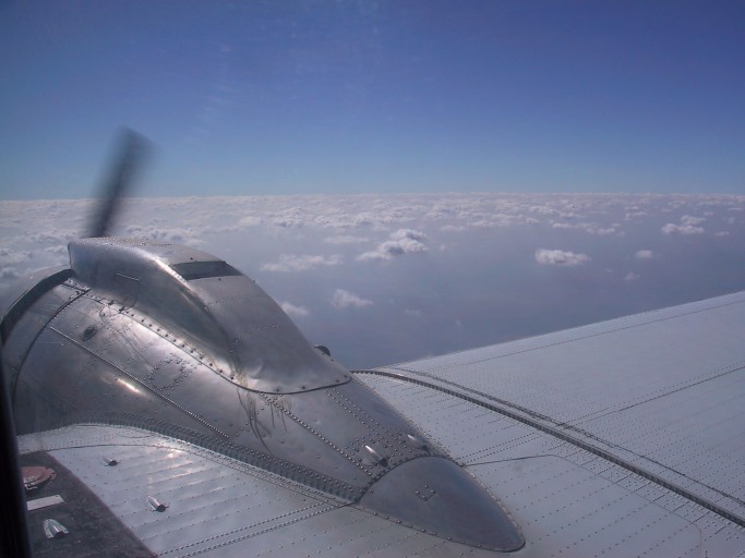 Aboard the DC3, and every eclipse chaser's worst nightmare is appearing... clouds. Lots of them. We crossed our fingers and trusted the almighty... Jay Anderson, the Canadian meterologist whose comprehensive weather analysis predicts an 80% chance of good skies on eclipse day.
