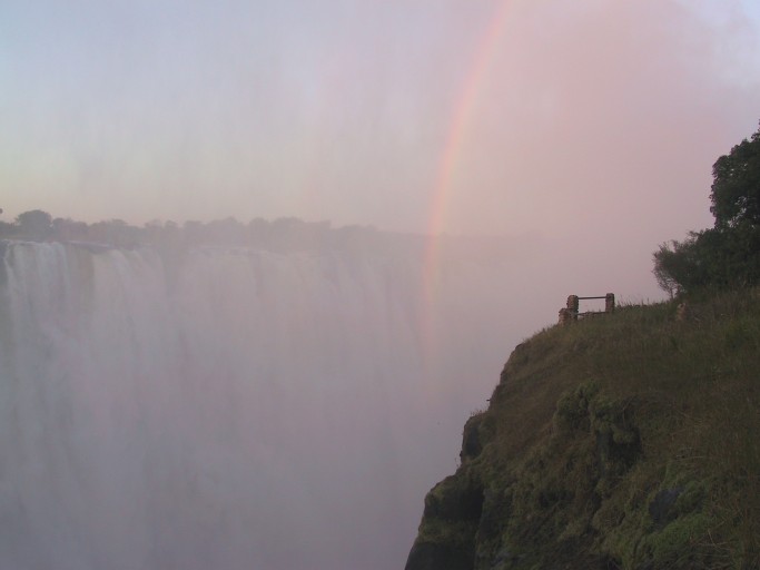 A magical spot. The mist obscures a lot of the view, and you have to wait a long time for just the right moment to take a picture. It's actually not a mist like at Niagara, but more like a pouring, driving rain when it hits you.
