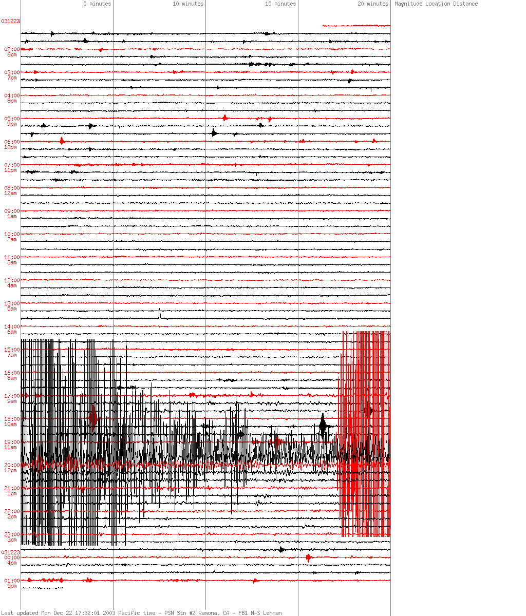- December 22, 2003: Mag 6.5 earthquake in San Simeon, California.