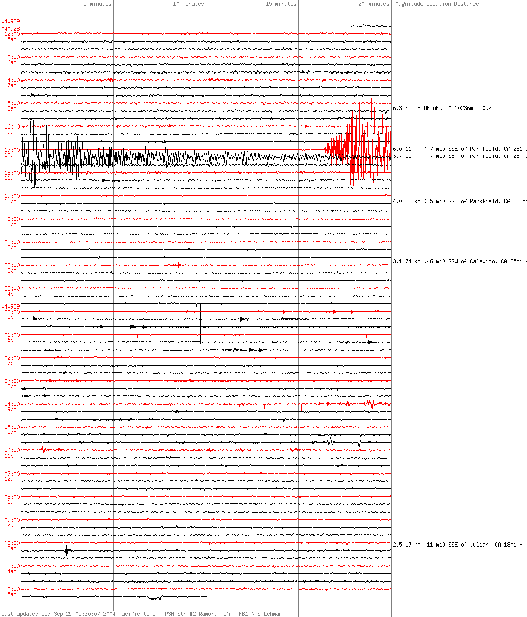 - September 28, 2004: Mag 6.0 Parkfield earthquake.