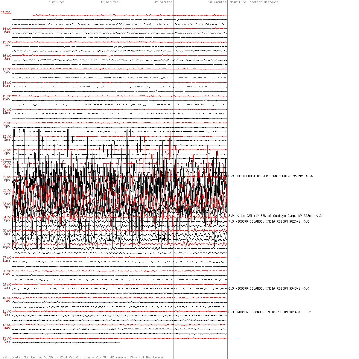 - December 26, 2004: Mag 9.0 off Sumatra, Indonesia.