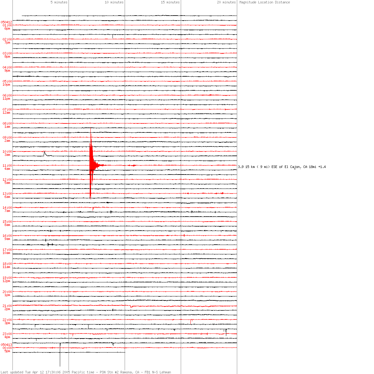 - April 12, 2005: Mag 3.9 just 18 miles away from home, one of the closest ever. (I was travelling and didn't feel it).