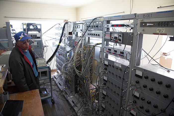 Manuel De La Torre explains the cosmic ray detector electronics.