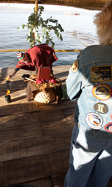 Kallawaya ceremony for Vic; Jen wearing Vic's favorite jacket.