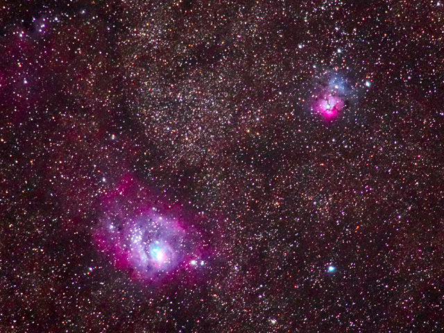 Lagoon and Trifid nebulas. Photo by Jen Winter and Fred Bruenjes.